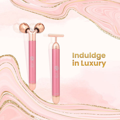 Elevate your skincare regimen with the PNK Radiant Gold 3D Electric Face & Body Massager, a revolutionary blend of sculpting and vibrating technology designed to deliver exceptional results. This advanced massager effortlessly releases muscle tension, contours facial features including the neck area, and targets concerns such as double chin, all while providing a luxurious skincare experience.