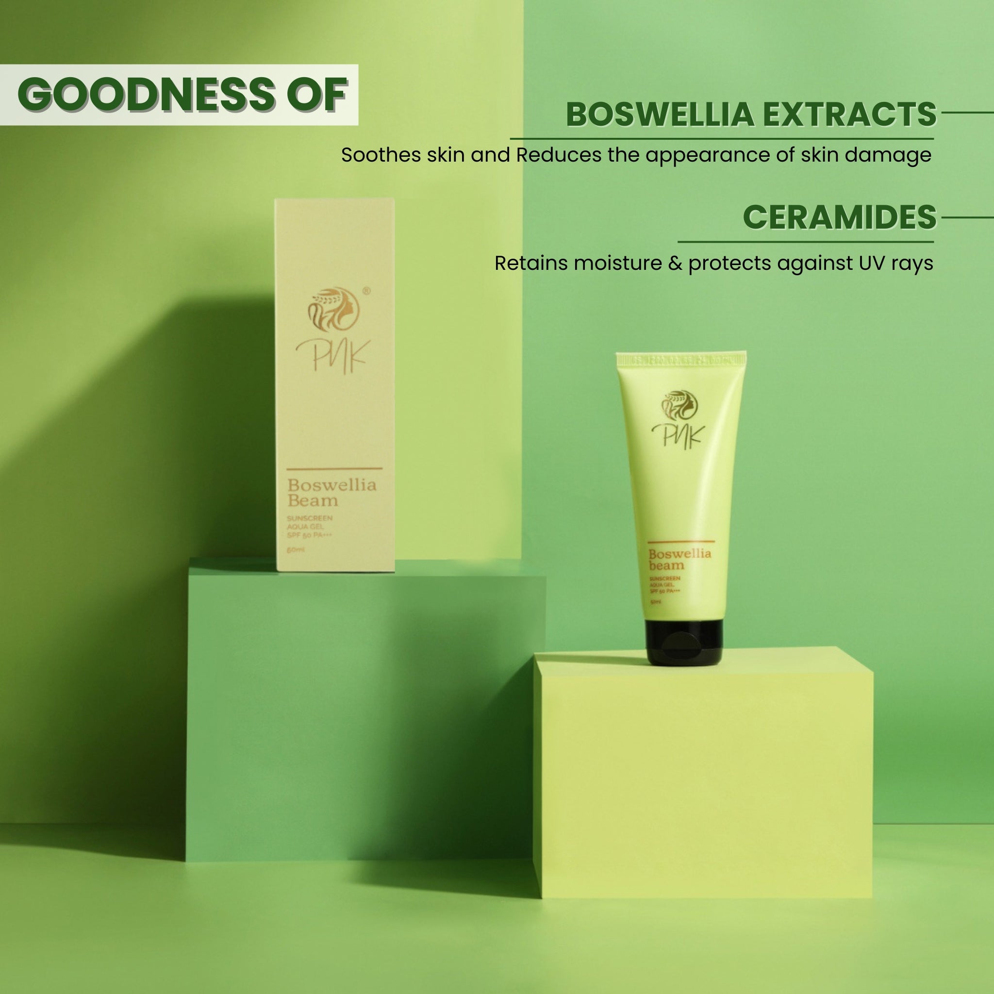 A: PNK Boswellia Beam SPF 50 PA+++ Sunscreen offers broad-spectrum protection and is water-resistant, lightweight, and ideal for daily wear.