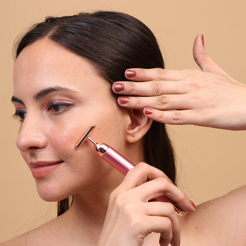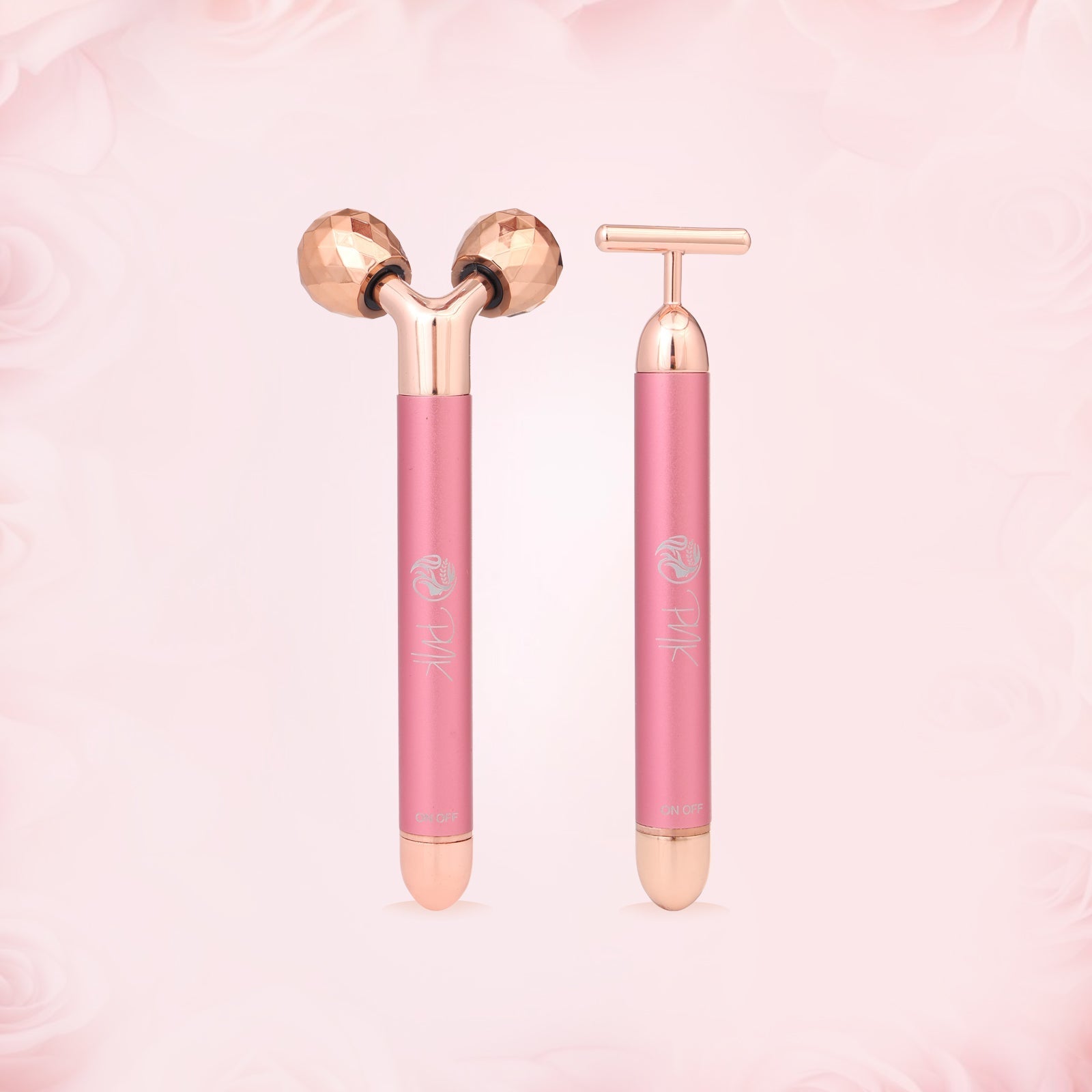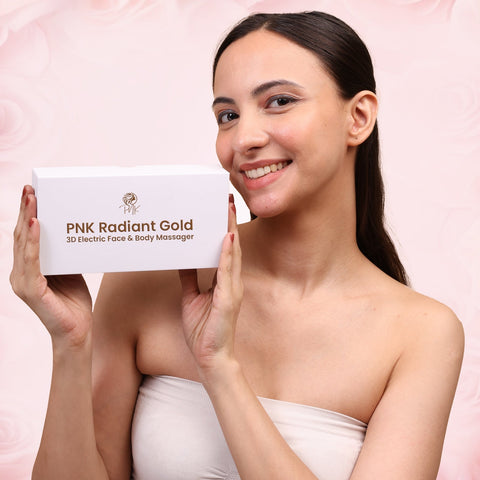 Elevate your skincare regimen with the PNK Radiant Gold 3D Electric Face & Body Massager, a revolutionary blend of sculpting and vibrating technology designed to deliver exceptional results. This advanced massager effortlessly releases muscle tension, contours facial features including the neck area, and targets concerns such as double chin, all while providing a luxurious skincare experience.